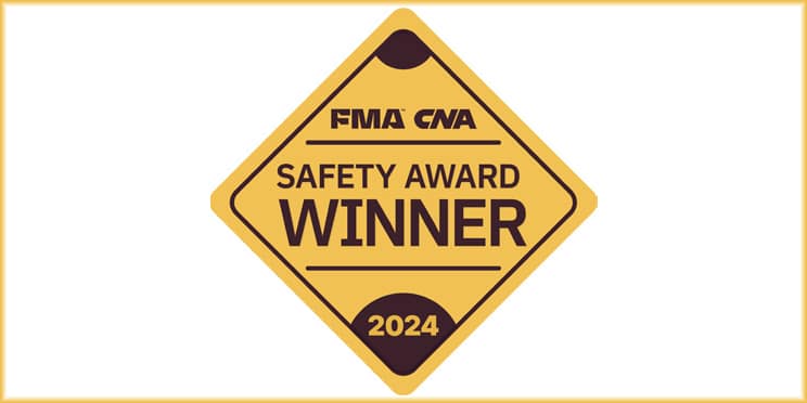 Sponsored by CNA, the endorsed business insurance carrier for FMA, the Awards are designed to promote safety in the industry, and winners are selected by the FMA Safety Council. The Safety Award of Merit is given to companies posting an injury and illness incidence rate for the reporting period that is better than the published Bureau of Labor Statistics (BLS) rate by 10 percent or greater, based on their NAICS code.