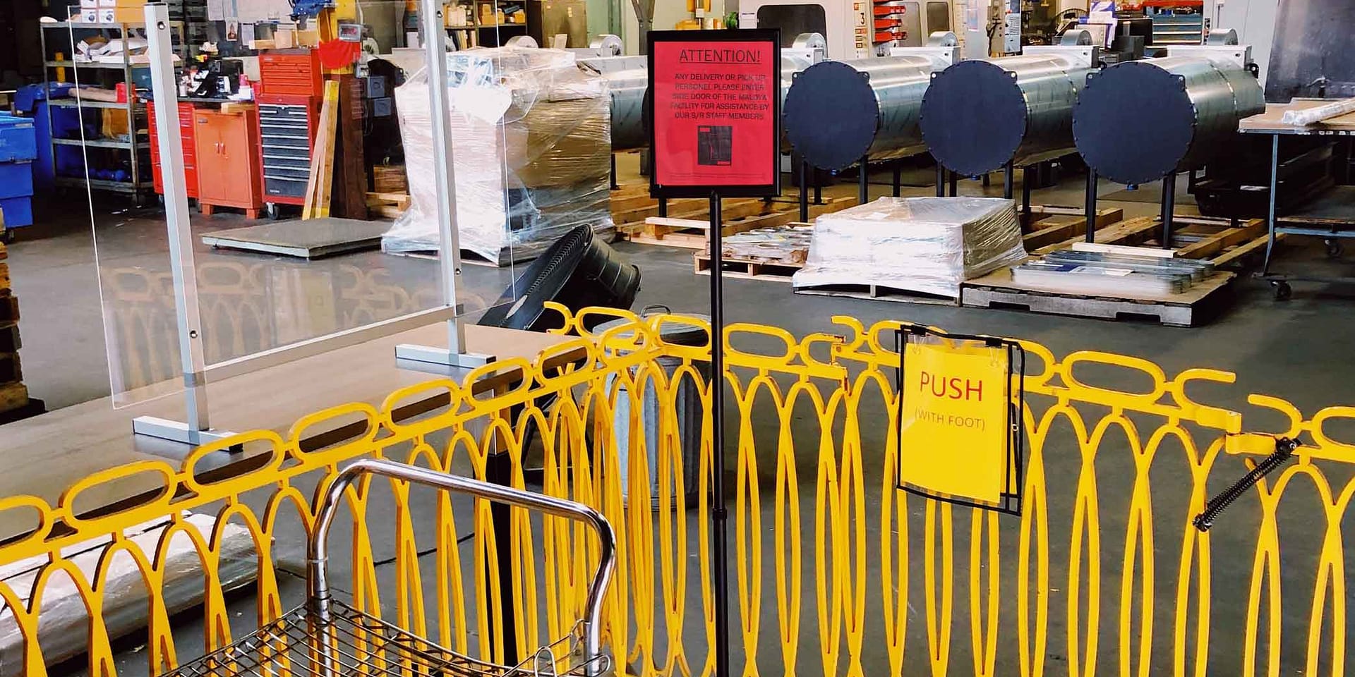 Our shipping and receiving areas have been closed off, with signs notifying visitors that they are not allowed in the facility unless it is for government inspections or for repair of equipment or systems. To further protect the health of our staff, plexiglass screens have been installed to allow for transactions to safely take place when necessary.